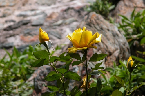Tag: giallo, foglie, verde, petali, fiori, rose, rosa, fiore, bocciolo, boccioli, rocce, roccia, piante, pianta.