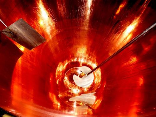 interno di una caldaia per la produzione di Parmigiano Reggiano