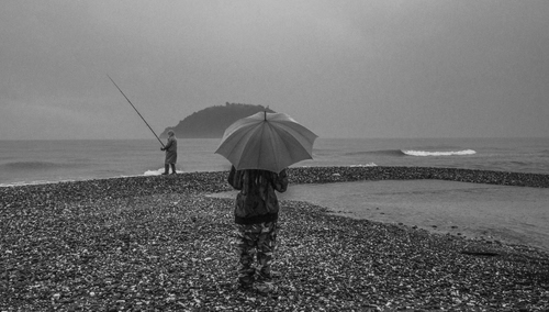 che tempo!!! ... anzi maltempo ... i pantaloni con tessuto mimetico sembrano far diventare per metà fantasma l'uomo - ottima immagine da riutilizzare nel contest maltempo ![]() |