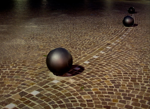 bella, me gusta!- lo sfondo in alto scuro evidenzia un bel gioco dei sampietrini e delle sfere grigio metallico. |