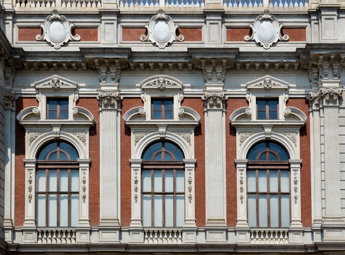 Tag: finestre, colonne, stemmi, palazzo, balconi, bianco, archi, vetri, balaustre, decorazioni, stucchi, mattoni.