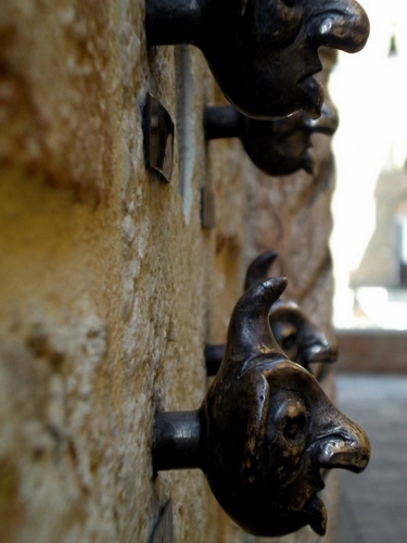 Passeggiando per Venezia di cose strane se ne vedono molte! come questi curiosi musi...sono dei campanelli, solo che devo tornarci per provare come si suonano... immagino si spinga verso giù.