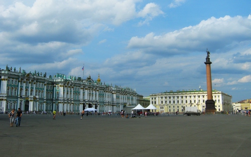 Piazza del Palazzo, davanti all'Hermitage, a San Pietroburgo.
