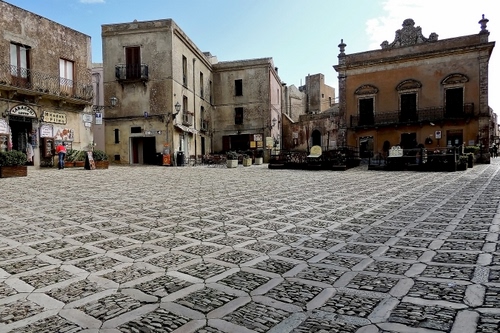 Bella la pavimentazione, belli gli edifici caratteristici di Erice. |