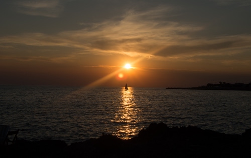 Un momento di serenità, un secondo sole ed una barca a vela rappresentano al meglio il tramonto nel salento in un giorno d'agosto.