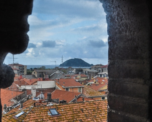 vista con comignoli dalla torre della campana di Albenga