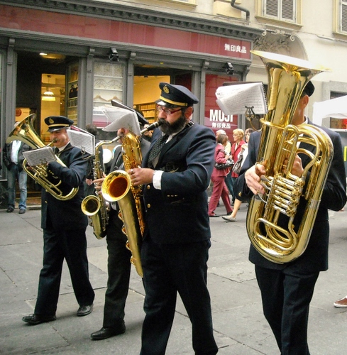 Altri tag (senza riscontro): tuba, persone, barba, strada, ottone, strumento, sassofono, suono, tromboni, trombone.