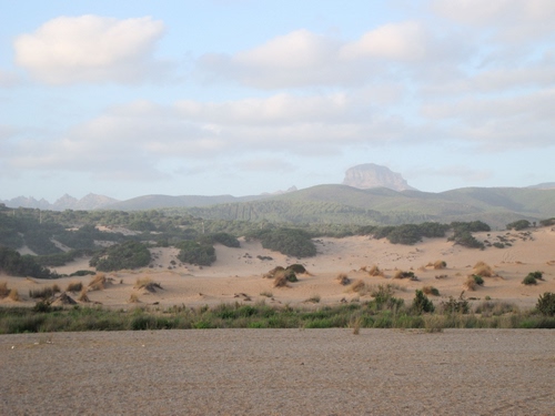 Veduta dell'entroterra dalla spiaggia di Piscinas, Sardegna