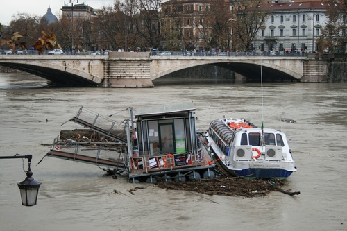 Tag: ponte, fiume, lampione, battello, acqua, alberi, case, barca, piena, imbarcazione, rami, città, archi, cielo, tevere.
