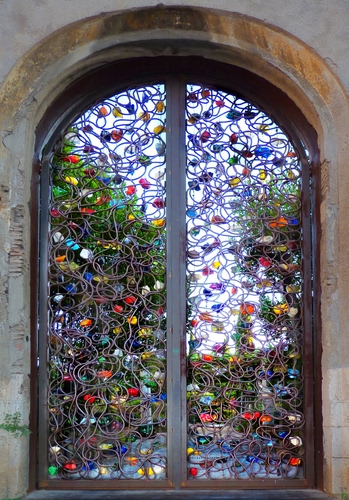 Il cancello dell’orto della Basilica di Santa Croce in Gerusalemme a Roma (5 min a piedi da San Giovanni in Laterano), è opera dell’artista greco Jannis Kounellis: in pietre di vetro e ferro, è stato inaugurato nel 2007. Purtroppo è esposto al nord, per cui sostanzialmente si fotografa sempre con la luce sfavorevole, e in più come si vede il muro intorno è proprio brutto |