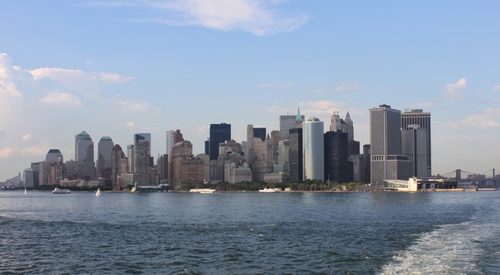 Skyline della parte meridionale di Manhattan vista dal ferry boat che va a Staten Island.