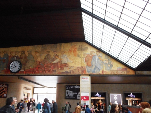 L'affresco 'Partenze' di Paolo Talani, nell'atrio della stazione di Santa Maria Novella a Firenze