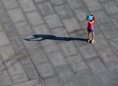 Tag: bambina, ombra, sandali, tablet, pavimento, azzurro, pavimentazione, rosa, piazza, libro, strada, pantaloncini, rosso, maglietta.