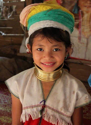 Bambina di etnia Padaung, nel nord della Thailandia.