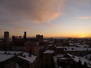 592° Scende la sera in piazza Duomo | 620° Tramonto sui tetti innevati |