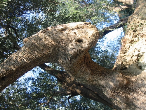L'ulivo è una pianta tipica della mia regione e quest'albero è interessante per la particolare curva del tronco che, con il foro nel legno, sembra rappresentare un animale. Forse un ermellino?