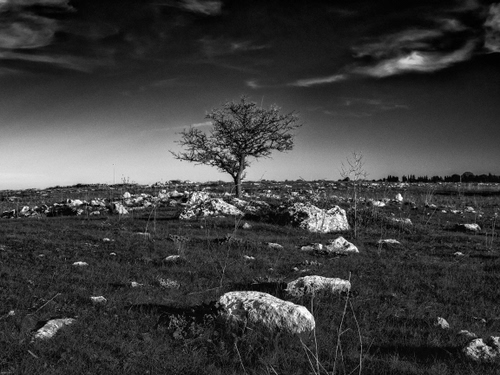 Un albero, pochi sassi ed un terreno incolto danno a questa immagine un senso di solitudine estrema. Siamo nel cuore del salento in mezza al nulla, solo io e questo alberello.