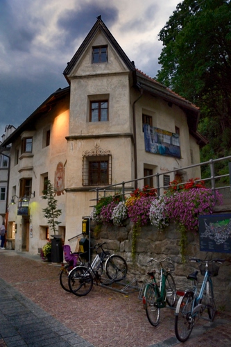 Tag: biciclette, fiori, casa, finestre, nuvole, scorcio, luci, muro.