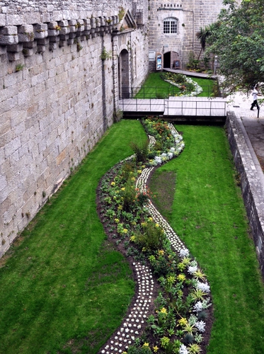 Tag: fiori, castello, verde, finestra, giardino, prato, aiuole, aiuola, ponte, fossato, pietre, erba, mura, passerella, curve, albero, piante, alberi.