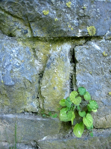 Le chiazze giallastre sono licheni e non muschi, mentre la piantina che sporge dalle pietre è una violetta!