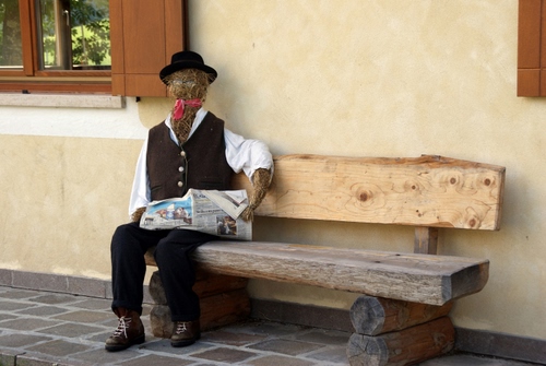 Tag: panchina, giornale, finestra, legno, pupazzo, paglia, manichino, cappello, statua.