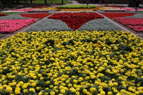 Aiuole fiorite vicino ad uno degli ingressi al Cremlino.