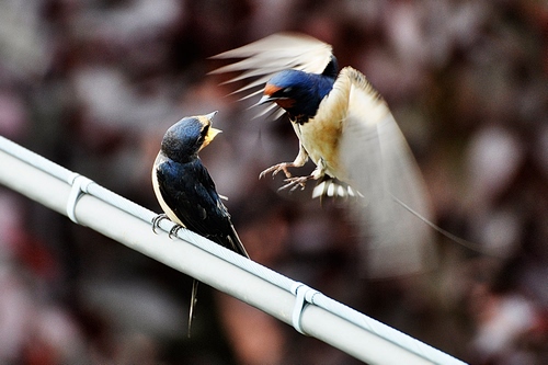 Strordinaria capacità creativa enfatizzata dal movimento delle ali che danno l'idea della delicatezza, appunto di "un battito d'ali". Qui l'attimo è davvero stato colto per raccontare una storia di tenerezza.in relazione alla tecnica fotografica l'autore ha fatto buon uso dei tempi e del diaframma sfocando lo sfondo al punto giusto e lasciando il movimento delle ali, senza sfocare la testa dell'uccellino in volo.la messa a fuoco delle zampette sul tubo lasciano pensare comunque ad una ottima capacità fotografica.