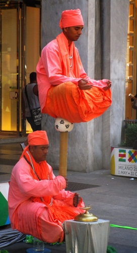 Artisti di strada in Corso Vittorio Emanuele, a Milano.