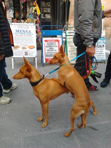 Il proprietario dei due cani mi ha dato le giuste indicazioni sulla razza: ""Il Cirneco dell'Etna è una razza molto antica. Le sue origini risalgono al 1000 a.C. Si dice che questa razza derivi dai cani dei Faraoni egiziani delle ultime dinastie e da cani importati in Italia dai commercianti Fenici. Successivi studi hanno indicato che molto probabilmente il Cirneco sia una razza autoctona siciliana. Nei secoli scorsi è stato utilizzato per la caccia al coniglio selvatico. Razza poco diffusa fuori dall'Italia."" ![]() |