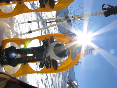 Ciaspolata nella neve di primavera.