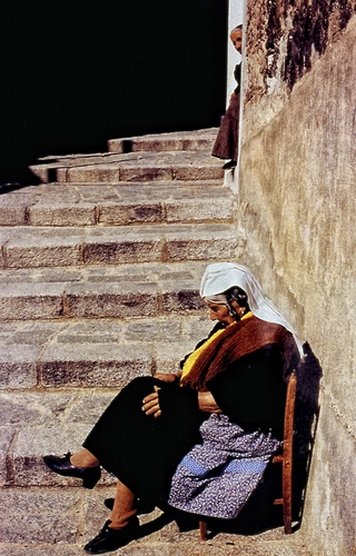 Fotografata suuna scalinata di S.Giovanni in Fiore provincia di cosenza mentre si prendeva il sole e in alto una vicina di casa che osservava
