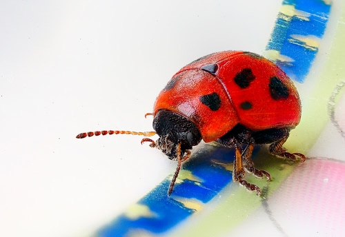 Altri tag (senza riscontro): corazza, azzurro, bianco, coleottero, livree, ravvicinato, sei, pallini, puntini, testa, rossa.