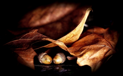 C'è poesia intorno a noi, ma spesso non la vediamo. Basta osservare meglio e possiamo trovarla: tutto sta nel perdere un poco del nostro "prezioso" tempo per guardarci intorno. Due ghiande sotto delle foglie possono essere l'interpretazione di un pensiero romantico al di là delle normali apparenze.