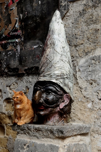 in un ritratto, secondo i canoni della fotografia, lo sguardo del soggetto, se volto ad un lato, dovrebbe guardare verso lo spazio più ampio della foto. in questo scatto, questo non succede, per questo la ritengo sbagliata perchè troppo centrale, avrei dato importanza a questo, anche perchè il gatto volge il suo di sguardo dalla stessa parte della maschera. il formato verticale era d'obbligo, ma con un po di più aria a sinistra e meno a destra, i colori sono ben bilanciati, andrebbe aggiustato un po coi livelli per schiarire soprattutto le parti più scure. la scena colta è più che simpatica. buona luce. |