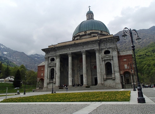 Il santuario di Oropa è un monumento dedicato alla Madonna Nera. Questa è la chiesa nuova con la sua imponente cupola.