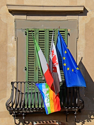 Foto dell'autore MV03041951 candidata al contest fotografico bandiere su Dizy. Data inserimento: lunedì 30 maggio 2016. Titolo: Balcone imbandierato