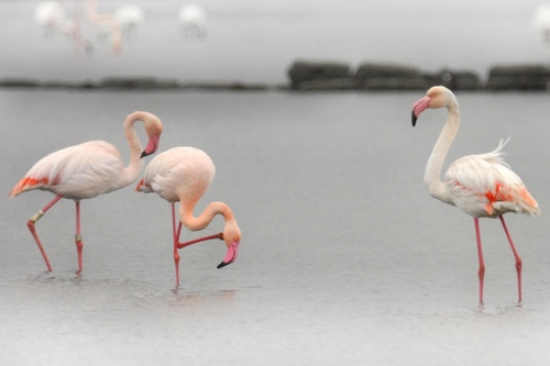 ho scelto questo scatto, parte di un mio reportage sui fenicotteri, perchè si sposa bene col tema tre del contest data l'uguaglianza numerica tra il tema del contest e i soggetti della foto. L'ho realizzata allo stagnone di Marsala durante un escursione con un collega usando la mia reflex semi professionale nikon d90, ottica 500mm catadiottrico; ho cercato di esprimere l'eleganza, la leggerezza e la classe che questo animale può dare all'osservatore e credo di esserci riuscita sopratutto in questo scatto visto che ho colto tre (per riconfermare il tema) pose diverse dei tre soggetti.