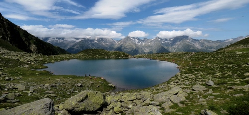Il lago di Chiusetta in Valle Aurina e sullo sfondo le creste di confine con l'Austria.