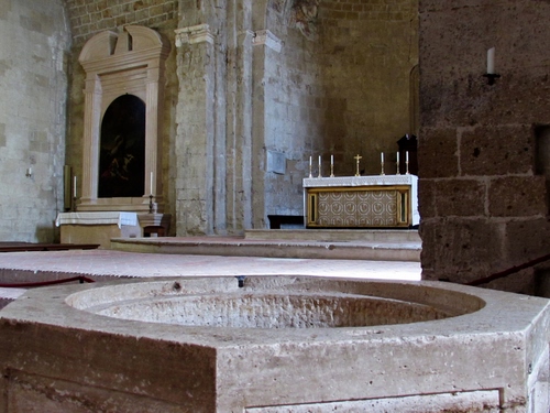 Dietro il fonte battesimale
