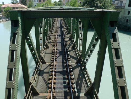 Ponte della Ferrovia sulla Dora Baltea ad Ivrea, fotografato dalla strada, con un po' di vertigini...