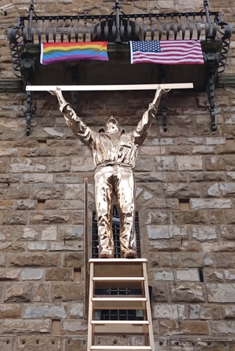 Firenze, piazza della Signoria, statua di Jean Fabre, l'uomo che misura le nuvole.