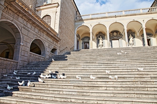 Abazia di Montecassino, la scala che porta al Duomo dal secondo cortile.