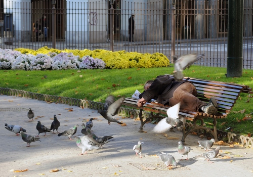 Tag: panchina, fiori, uomo, piccioni, colombi, aiuola, cancellata, uccelli, recinzione, giardino.