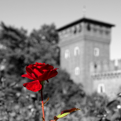 Rosa rossa nel giardino del parco del Valentino.