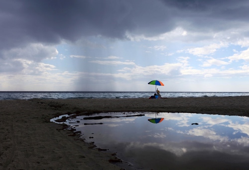 Tanta fatica per arrivare in spiaggia, 10 km di sterrato... e mentre stai lì a goderti il sole... ti arriva dritta davanti a te la pioggia estiva...