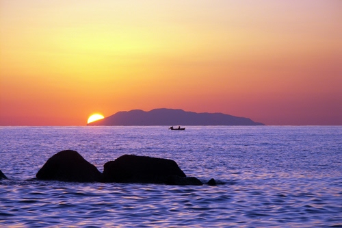 il mare blu, il cielo che si accende prima di arancio e poi di rosso ed in mezzo una barca sulla quale io non ci sono con il corpo ma con lo spirito....immensa beatitudine.