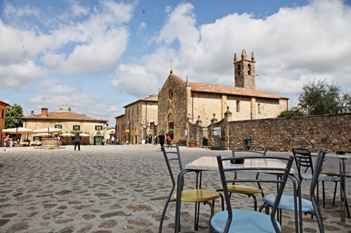 La storia di questa chiesa è strettamente legata alle vicende del castello di Monteriggioni. Venne costruita tra il 1213, anno di fondazione di Monteriggioni, e il 10 giugno 1235 quando, al suo interno, i delegati dei comuni di Siena e di Poggibonsi accettarono le condizioni di pace con i Fiorentini. La nuova parrocchia che nacque dopo la sua fondazione dipendeva dalla pieve di Marmoraia e riunì i popoli della canonica di Stomennano e della chiesa di San Giovanni a Stecchi. Lo sviluppo di Monteriggioni fece aumentare l'importanza della chiesa, tanto che alla fine del XIII secolo fu promossa a pieve: vi venne trasferito il titolo di Canonica Sanctae Marie Stemennano e vi fu posto il fonte battesimale. Aveva rendite del tutto paragonabili a quelle delle vicine pievi senesi. Fino ai primi del XIV secolo veniva usata sia per le funzioni religiose che per quelle civili. Nel 1299 vi fu posta una nuova campana ancora oggi presente, tale campana proveniva forse dalla rocca del castello.