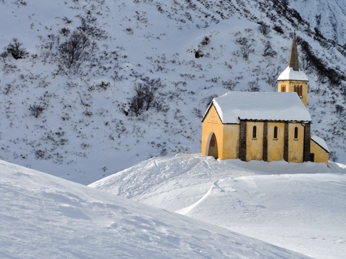 Tag: inverno, neve, chiesa, montagna, campanile, bianco.
