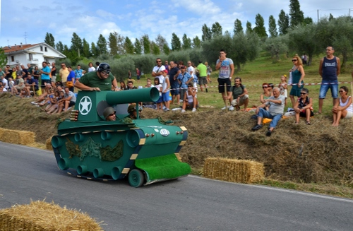 Tag: verde, alberi, paglia, casa, strada, persone, balle, spettatori, carrarmato, carro, fieno, pubblico, collina, sfilata, stella, gara, finto, cannone, asfalto, cielo, armato.