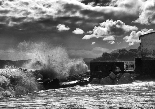 il mare impetuoso incontra le piccole scogliere di Albenga